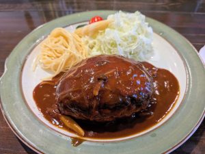 「い~肉」の日なので、ブランチは清水の老舗洋食屋「エポック」さんにてデミグラスハンバーグを。