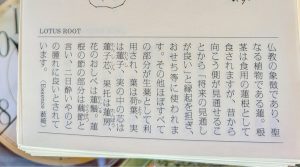 「蓮のすべての部分が人の役に立つ」ことがわかります。私も「人のお役に立てるようなーここぞの言動が結果的に人の役に立つことができるような生き方を志していきたい」と感じました。