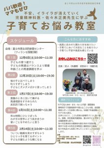 子育ての悩みを抱える保護者の方も少なくないと思います。先日、寄付のため伺った「ゆめ・まち・ねっと」様の講演があるそうですので共有しておきます。