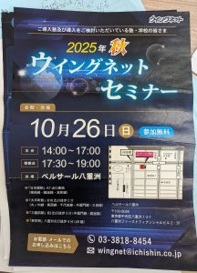 あと1週間で10月が終わりますね。前半ゆっくりな感じであった10月も後半はあっという間に時間が過ぎ去り……「てーへんだ、てーへんだ」といった感じです。日曜日は東京出張でセミナー参加(写真)。今回もいろいろ勉強させていただきます。