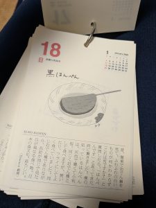 今回購入したカレンダーは「毎日、食材や食事に関する知識が載っているかなり手の込んだ品物」で4,000円もするもの。私の食いしん坊ぶりがこんな所にも出ているわけですが……月刊誌「味の手帖」からスピンオフした商品。毎日がより楽しく過ごせそうなカレンダーです。