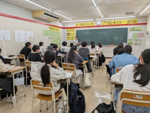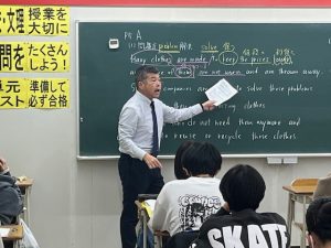静岡県の校舎では本日、明日と「中3学調直前特訓」(20時間特訓)を開催しています。月見校にも塾生+塾生以外からの申し込み4名が集い、朝8:50から一生懸命机に向かっていました。担当した4コマの英語、「条件作文」は50分喋り続け……今回の指導方法は新たなチャレンジでしたが、これもいいなぁ。「長文読解」では日本語で理由や内容を書かせる問題をテーマに指導しました。