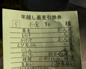 あるお店で年越し蕎麦も注文しました。少しお高いですが、奮発して「にしん蕎麦」にして食べたいと思います。このお店以外でも蕎麦を注文し食べ比べをしてみようか。年越しの準備を少しずつ、少しずつ。