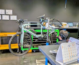 今日は昨日に続き午後3時出社の日。朝から年末年始のための準備をゆっくりしてから出勤です。自転車で13km移動しながらブランチを。今年最後の自転車のメンテにも。チェーンの汚れを取ってもらったり、タイヤの空気圧等の調整をしてもらったり、40分ほどかけ丁寧に整備をしてもらいました。もちろんとっても快適な走りに!!健康のため晴れた日はなるべく自転車で通勤を。(明日の静岡市は雨のようですが……)