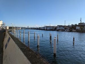 清水「巴川」沿いサイクリング。水神社、下清水八幡宮(月見校近く)、淡島神社(静岡鉄道入江岡駅向かい)に参拝しながら河口まで2時間、往復16kmを楽しみました。自転車はいいですね。「適度なスピードで移動しながら、気になった場所ではすぐにペダルを漕ぐのを止め立ち寄ることができる」ところが最高にいい!!愛車には1年2か月ほど乗っていますが、じわじわと「いい買い物をした」と実感。校舎間移動のない晴れた日はなるべく自転車で通勤したいと思います。