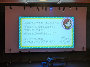狂歌のような雰囲気を纏ったものが清水ミチコさんのライブの特徴とご紹介しておきましょう。ちなみにそこには微塵の暗さはなく「明るく、爽やか」といった一貫性があるのも大きな特徴です。必ずまたお邪魔し、お腹を抱えて笑ってきたいと思いますなぁ。