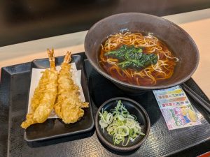 昨日は多忙で夕飯を摂らず……月見校で授業と掃除を終え、帰路にある「ゆで太郎」さんに寄りました。実はこの2年、外食で一番食べているのはここのお蕎麦だと思います。昨晩は「大海老天」をいただいたのですが、かなり美味しかったのでみなさんへもおススメしたいと思いますなぁ。「ゆで太郎」は全国に200店舗ほどあるようですので、みなさんのお住まいのお近くにもあるのでは!?ここのお店、私は「午後11時前来店の常連」ですので、顔は覚えてもらっています。チケットをもらっても使ったことがないことも把握されており「欲しいものが無いですかね~(笑)」なんて言われます。次回は冷たいお蕎麦と大海老で食べてみたいと思います。