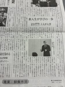 遅ればせながら「Gakken高等学院 入学式」の様子が岳南朝日新聞の記事になりました。取材ありがとうございました。あれから3週間が経ちましたが、生徒のみんながんばっていますかね!?「ご自身の大切な人生を逞しく歩んでいってほしい」と思っています。また、素晴らしいスタッフ陣がみんなを強力にサポートしてくれますので、大いに頼ってもらいたいと思います!!