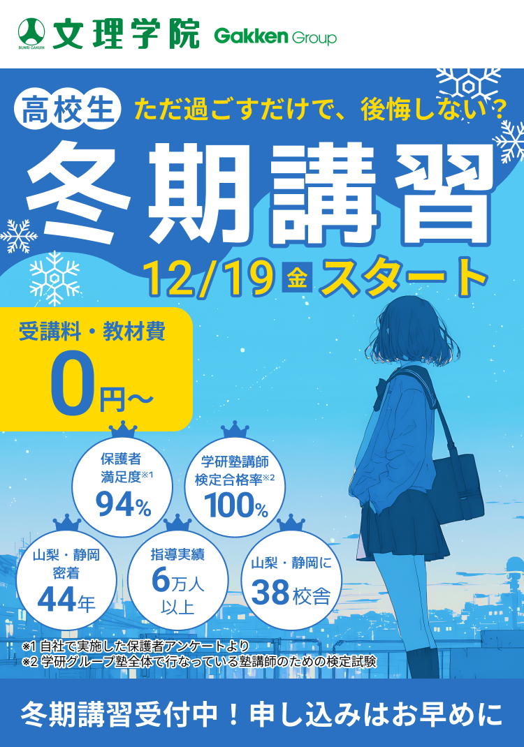 大学受験は早い者勝ち!文理学院の冬期講習で基礎固めをしつつ、大学入試問題にもチャレンジしてみましょう。学習計画の立て方や効果的な学習法なども学べます!